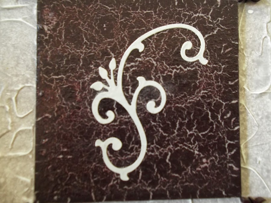 Una vez craquelada la plaquita, le pego un adorno que tenia en papel y que he pintado de organza (adorno que tenia hace mucho guardado ..por si acaso).