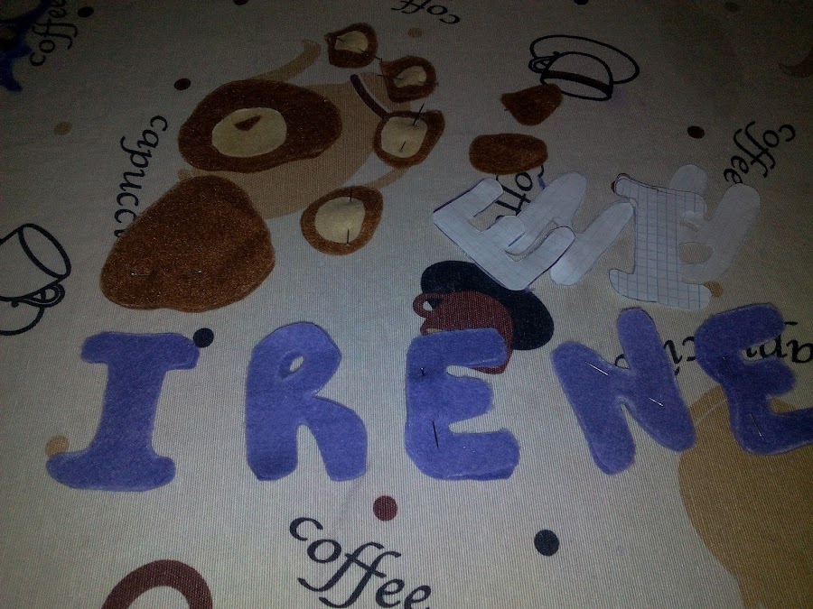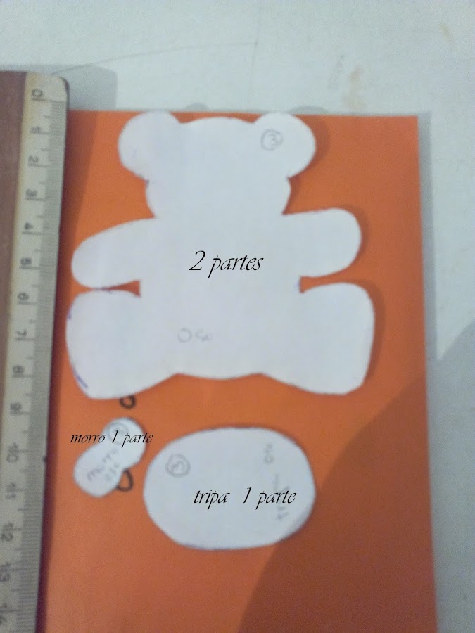 en las letras debemos doblar el fieltro para que salgan dos partes y de los muñecos también ,menos lo que compone la tripa el morro etc.. que solo cortaras uno de cada
