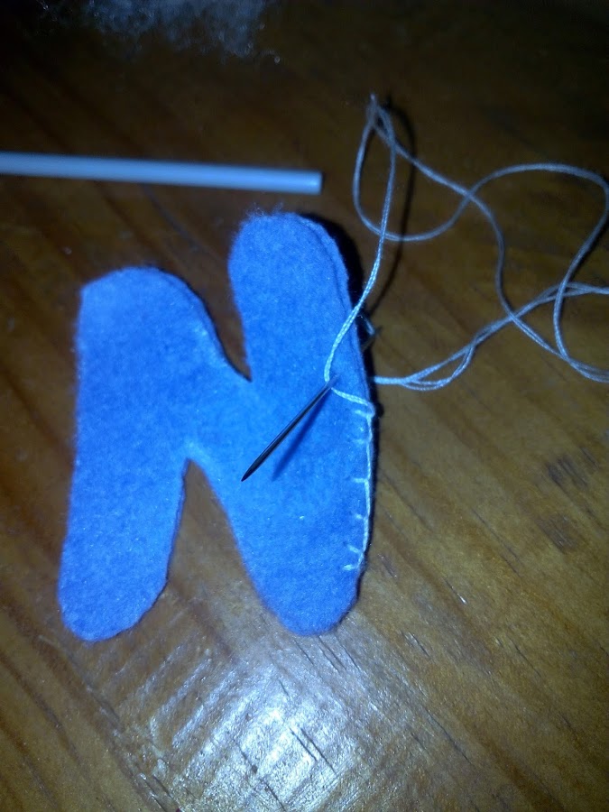 ha hora procederemos a coser lo , con la puntada a fecton tanto las letras como el muñeco