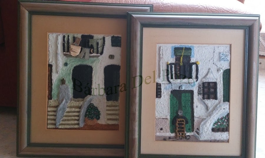 Una de las primeras cosas que os quiero mostrar, es esta pareja de cuadros; está trabajado con una pasta rustica que le da volumen y pintado con acrilicos.