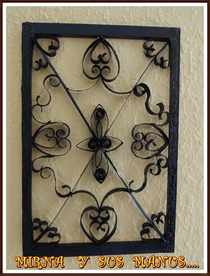 Este fue uno de mis primeros trabajos, este pequeño cuadro lo realice por peticion, pero el mio fue hacer 4 iguales para decorar un espejo rectangular, los uni y esos cuadros los tengo por mi escalera, se ven geniales ya que parecen forja... O herrreria y son ligeros y muy lindos