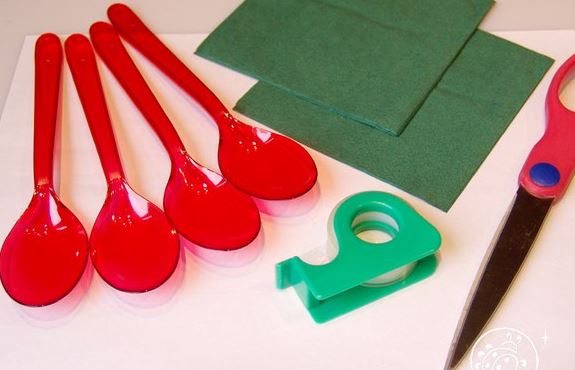 Las servilletas de papel, te servirán para hacer las hojas donde vayan las flores hechas de cucharas.