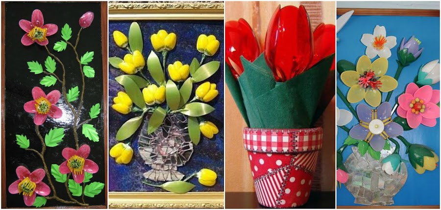 He quedado sorprendida con las maravillas que podemos hacer con las cucharas y tenedores de plástico reciclados, ¿ alguna vez haz visto cuadros decorativos con cucharas ? yo no lo había visto hasta ahora, y me parece tan creativo que vale la pena intentar hacerlo. Las manualidades de reciclaje que te traigo ahora, son espectaculares, cada una tiene un detalle especial, te invito a que veas el primer tutorial, el cual es una maceta con flores de tulipan hechas con cucharas de plástico recicladas, también veras un vídeo, el cual esta en otro idioma, pero se ve claramente cómo hacer un tipo de rosa, quemando unas cucharas de plástico. ¿ Dime cual de estos adornos te gustaría hacer ?