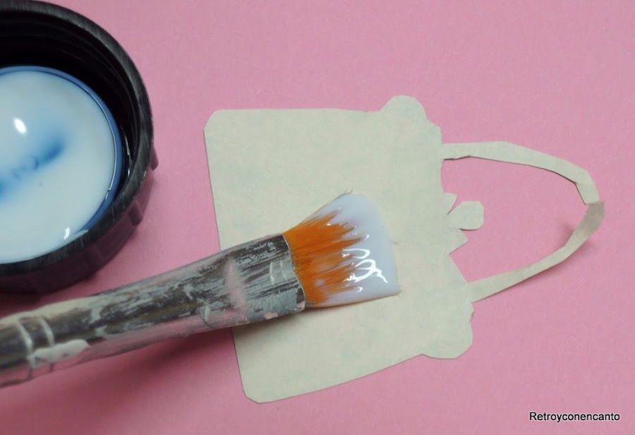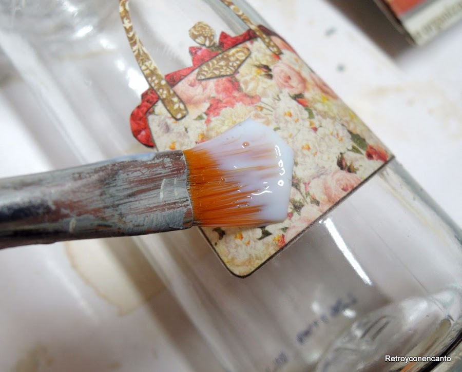 ..., elegimos los motivos, y aplicamos sobre ellos cola para decoupage...