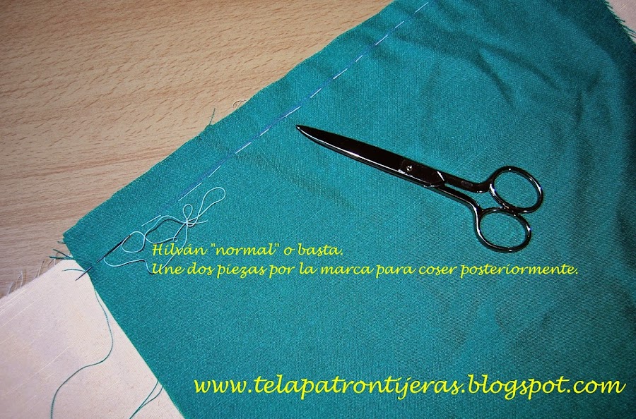 El hilván "normal", basta o bastilla, es el más habitual y el que utilizamos para unir dos piezas entre sí, pasándolo por donde va marcada cada pieza.