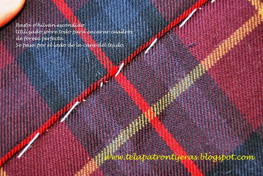 El hilván escondido, es un tipo de hilván que se utiliza cuando debes unir telas con estampados concretos o cuadros, que debemos encarar y que se pasa por el lado derecho del tejido.