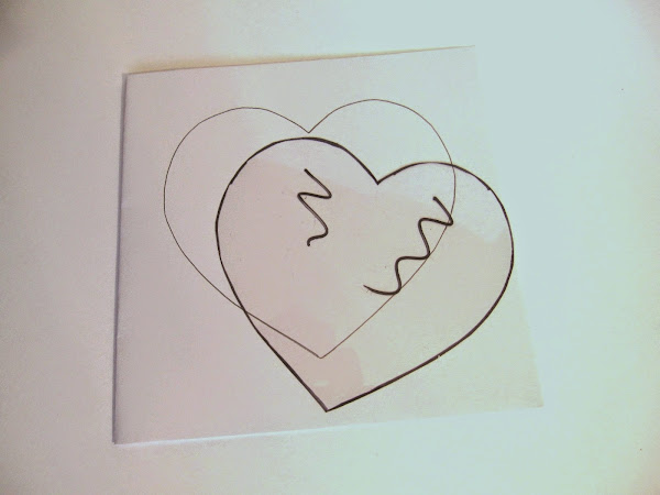 2.- El corazón lo centramos en nuestra tarjeta y con el lápiz negro repasamos el contorno para marcarlo y lo recortamos.