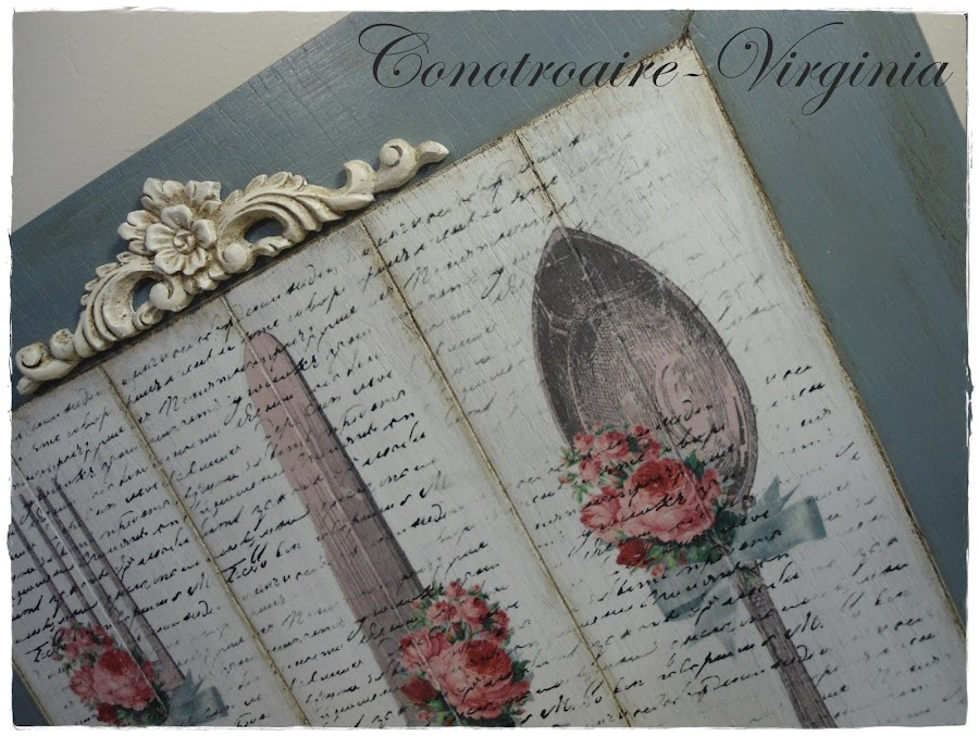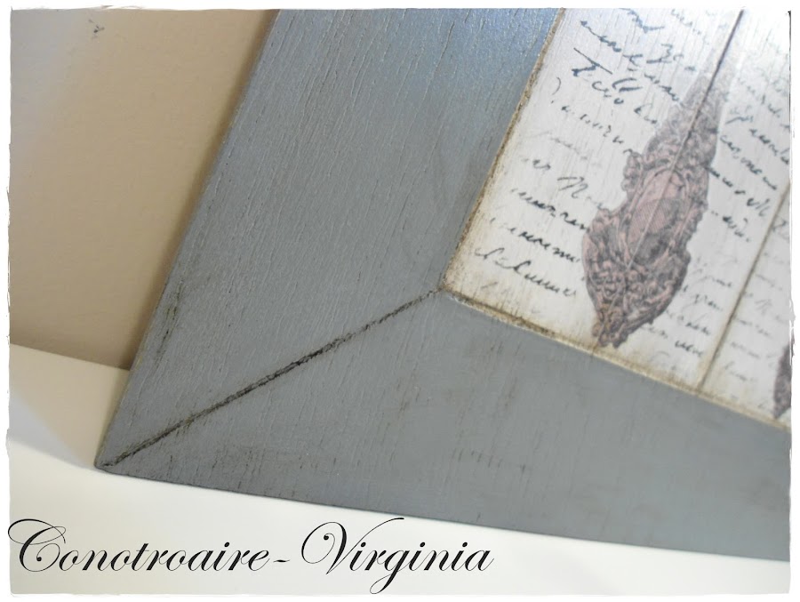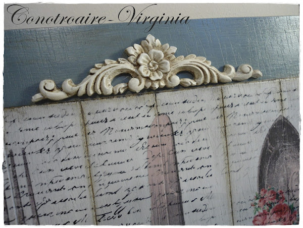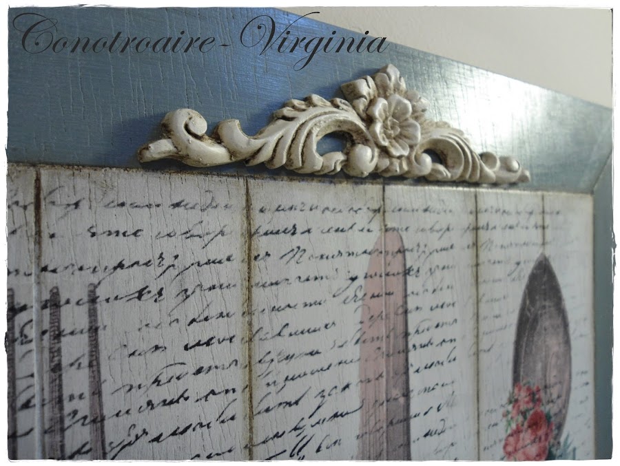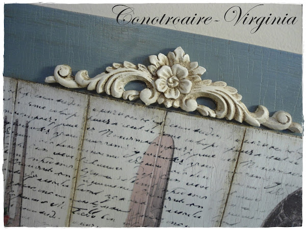 Otra cosa que tenia muchísimas ganas de utilizar, es esta moldura de resina. Las compre ya ni me acuerdo........creo que el primer año que vino Creativa a Madrid, y nunca conseguía acoplarlas a ningún trabajo, y me encantan como quedan envejecidas con cera.