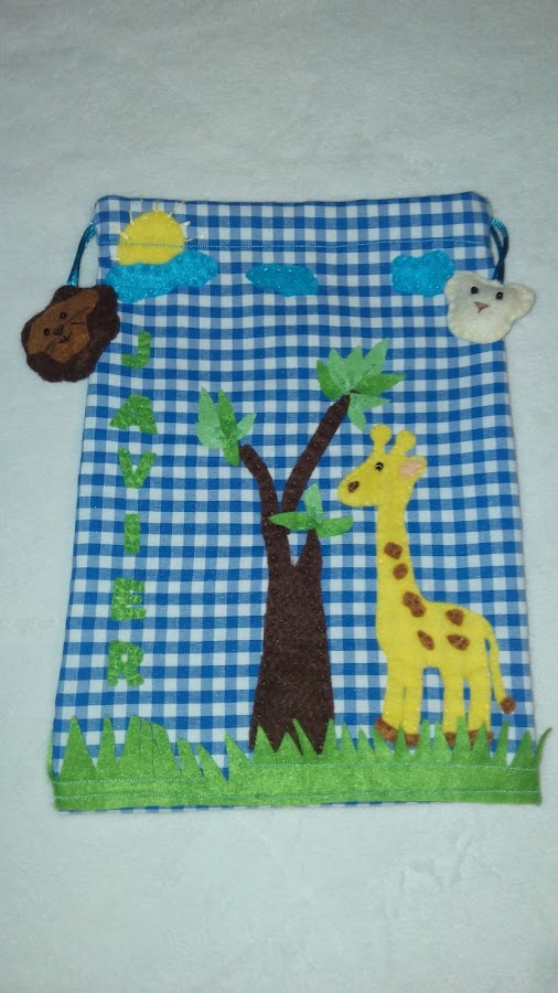 a juego, ésta vez en lugar de la carterita porta cubiertos, me decanté por una bolsita para la merienda, y así Javier podía presumir de bolsita en el cole., y la verdad es que no me equivoque!