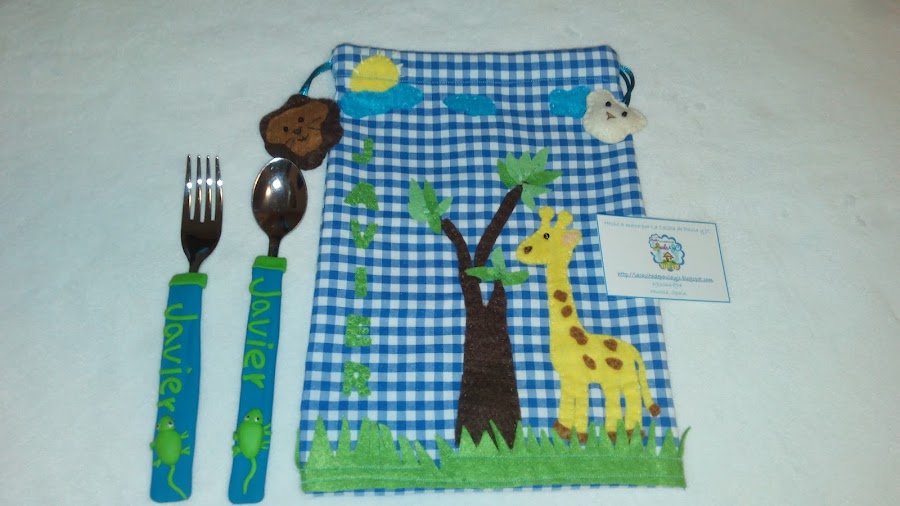 Unos cubiertos personalizados, ésta vez todo lleno de animalitos, porque me consta que le encantan los animales, con deciros que cada vez que se va a la bañera forma allí el arca de noe, jajaja, se va a la bañera con todos sus animalitos., así que se me ocurrió que tal vez le haría ilusión algo así