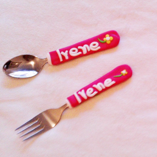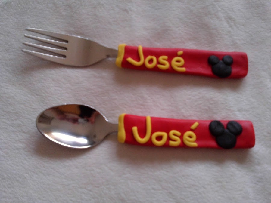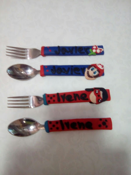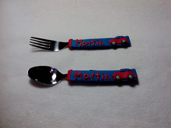 Hoy pasaba por aquí para mostraros estos cubiertos, cuya personalización ha sido realizada totalmente a mano, de acuerdo a las preferencias de los peques.