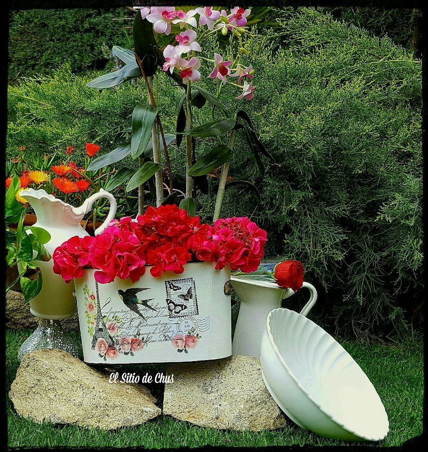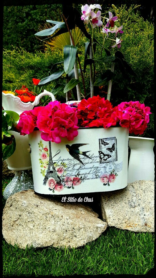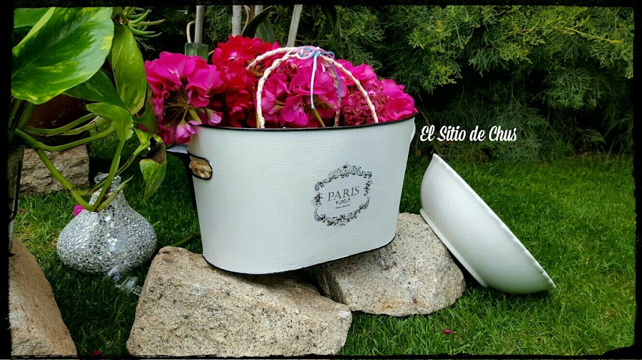 Después de mucho pensar cuál sería la mejor técnica para ella, me decidí por el transfer, así que después de una capa de imprimación y dos de pintura a la tiza blanca, le hice el transfer con mod podge. Pinté el interior y los bordes con acrílica negra, os gusta?