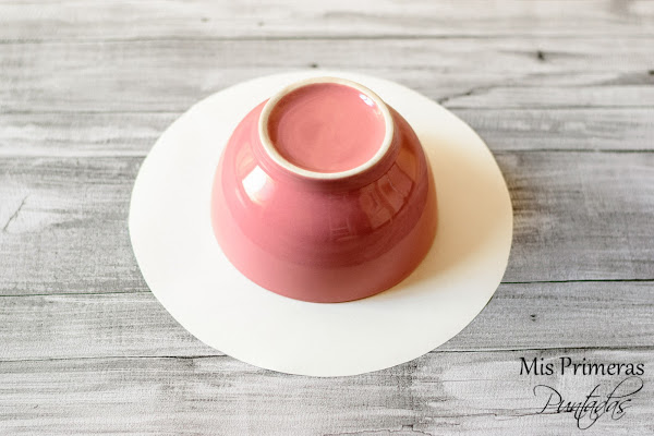 Lo primero que haremos será el patrón. Para ello dibujaremos el contorno del cuenco o bandeja y le añadiremos unos 5cm (para recipientes pequeños) ó 6cm (para recipientes grandes) alrededor.