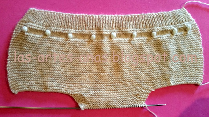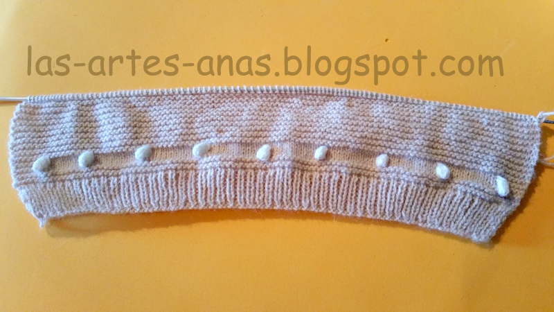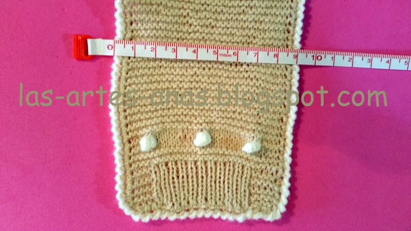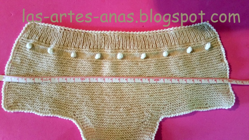 Cuando alcanzo 30 cms, cierro, sin olvidarnos de tejer los bodoques y la cenefa, IGUAL QUE EN LA CINTURA