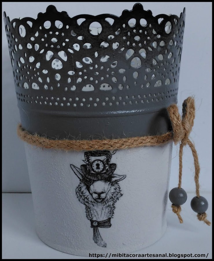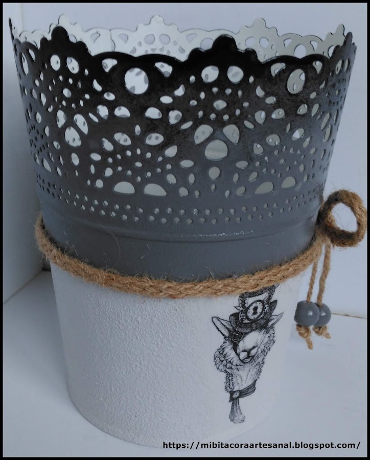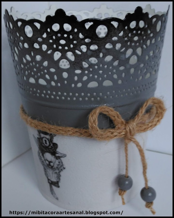 se trata de un cubremacetas comprado en Ikea, que en su origen era totalmente en color blanco.