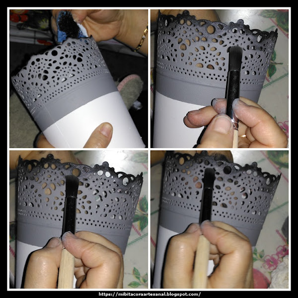 con pintura acrílica en color negro voy dándole al filo con una esponja a toquecitos pequeños,