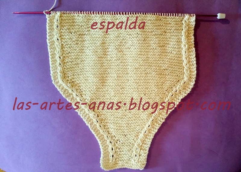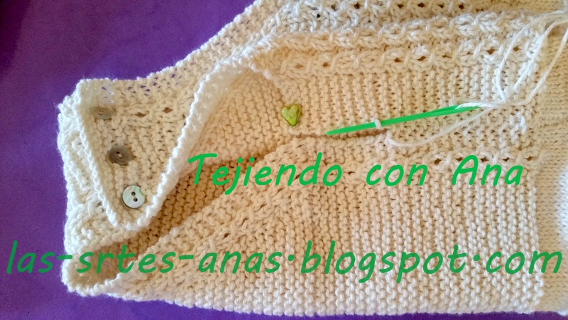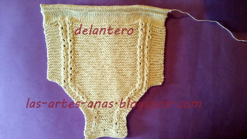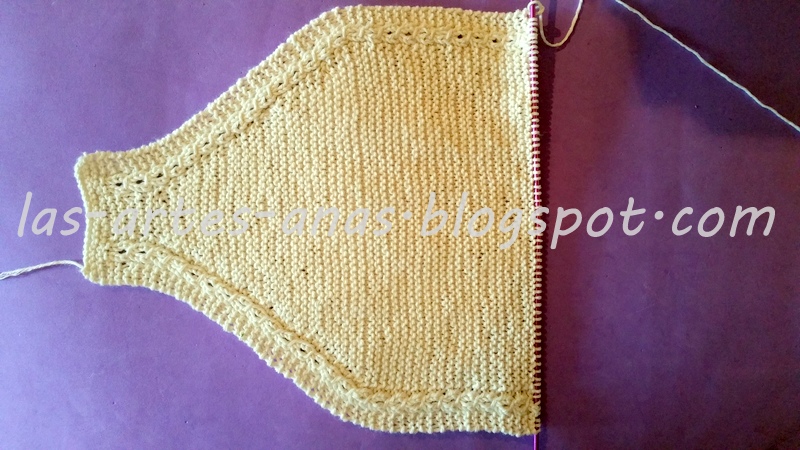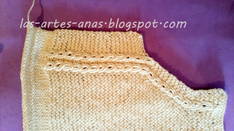 SEGUIMOS AHORA tejiendo recto, con un solo ochito, los mismos cms, que en el delantero