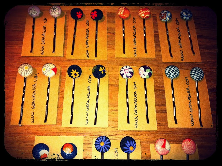 Muy buenas tardes!!!!!La semana pasada hemos hecho unas bonitas horquillas que seguro que os alegran la vista en estos días previos a la primavera. Son perfectos ahora que empieza a llegar el buen tiempo. Y seguro que gustan a grandes y pequeñas :) Además son solidarias!!!! Irán a formar parte de las cosillas que ya tiene en su poder Mundo Vivo . Hemos pensado que ya que algunos negocios colaboran ...