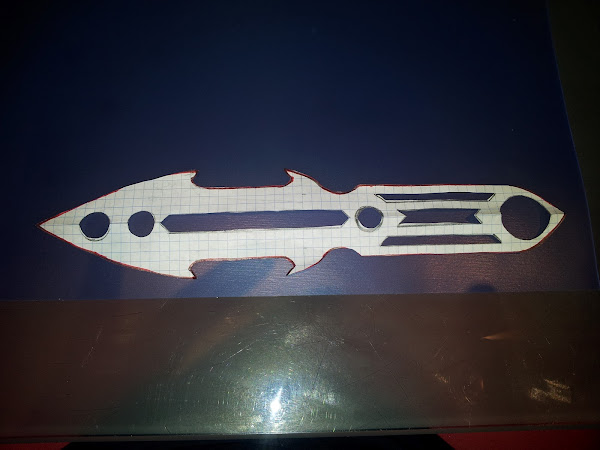 Si sólo vas a hacer uno o dos cuchillos, puedes directamente usar el papel como plantilla, pero si deseas hacer más, lo mejor será que copies el papel en una lámina fina de plástico.
