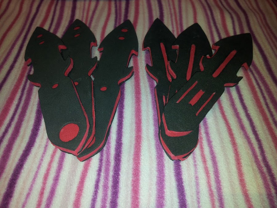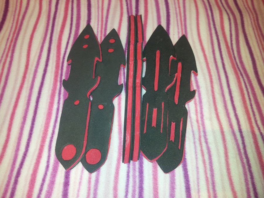 En este caso yo he hecho un juego de seis cuchillos, con el interior en rojo y el exterior en negro.