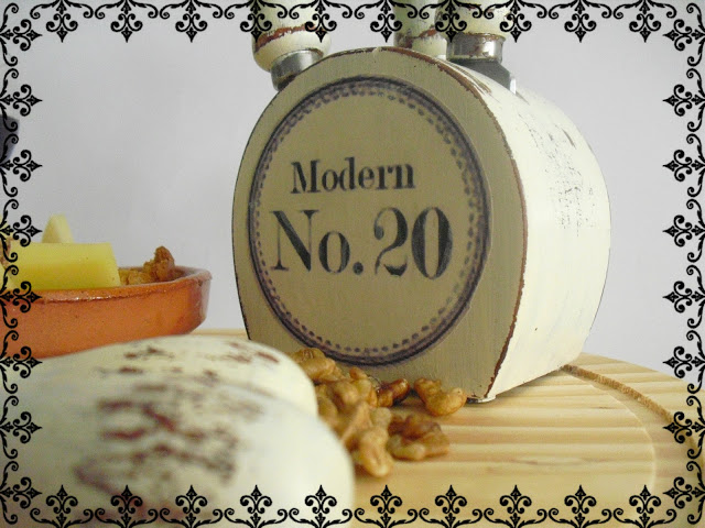 (me falta personalizar la base de madera, que en realidad es de una quesera enorme, pero eso ya lo haré cuando pueda... irá a juego con lo demás!)