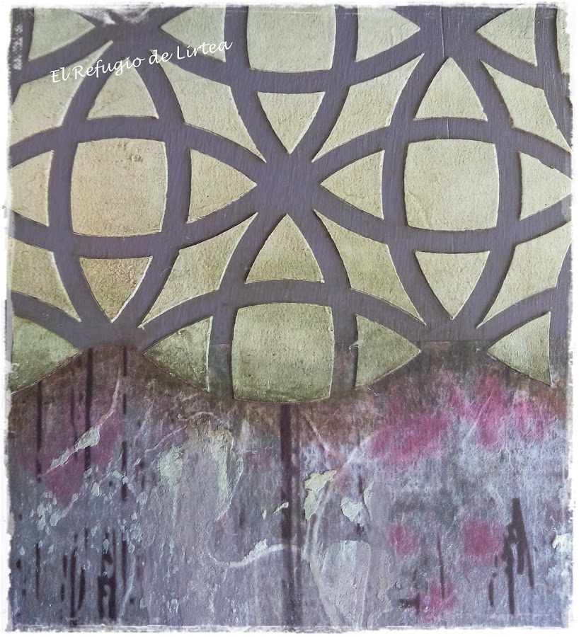 En la parte superior que me queda sin cubrir realizo un stencil en relieve que pinto en color verde.