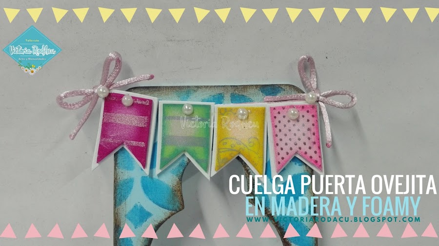 Me encanta realizar proyectos que mezclan madera y foamy, así que aproveché esta oportunidad para realizar este cuelga puertas en madera decorado con una tierna ovejita.