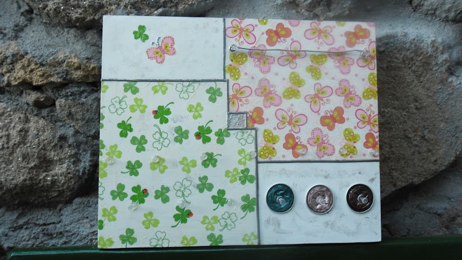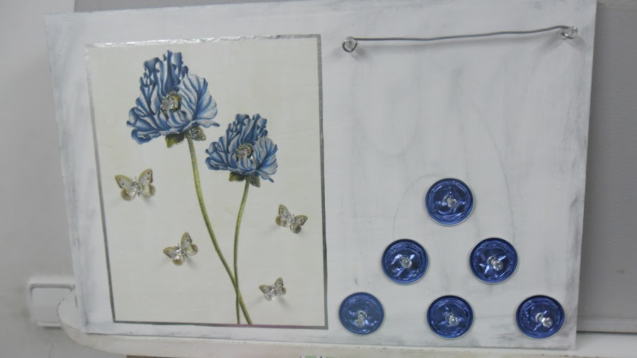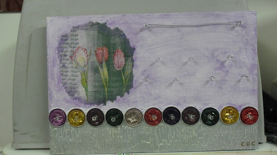 Unos cuelgacollares, .....Tablero de DM....Decoupage...Capsulas Nespresso.... e imaginacion...(que ultimamente no es mucha, jejejeje)