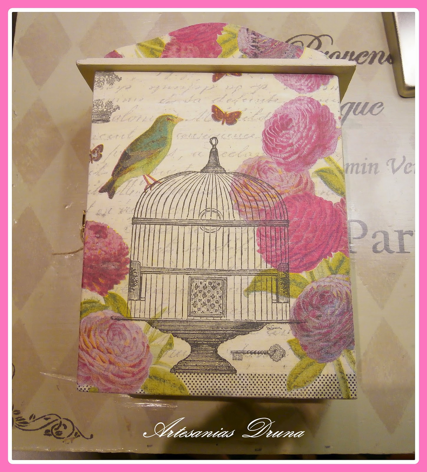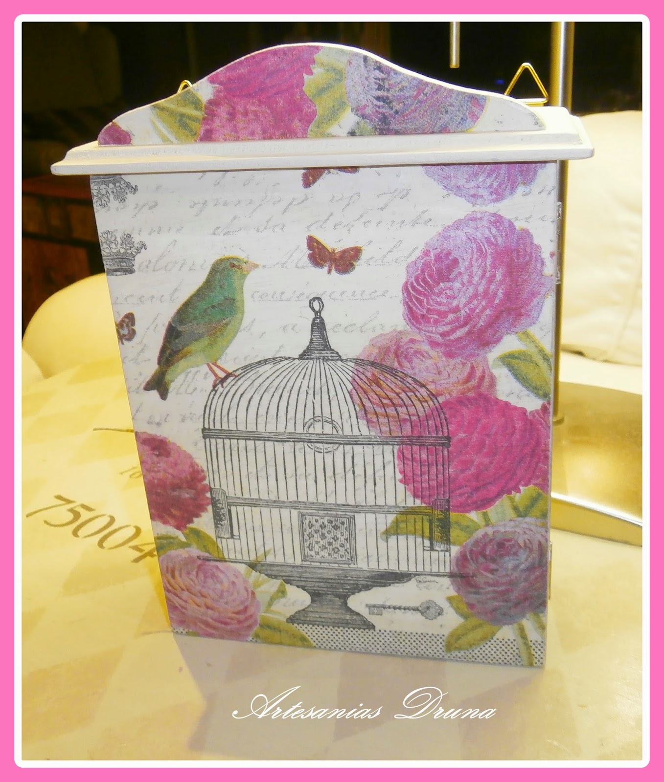 Esta cajita de madera me la consiguió mi querida Mar, y se fue para mi querida Mamen. Está realizada con acrílicas, entelada con doble faz y stencil.También va decorada con tela de arpillería barnizad ...