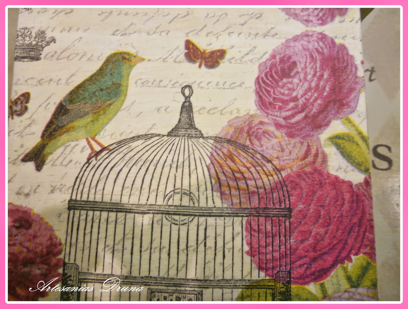 Este cuelganotas es totalmente original para la cocina. Está realizado con papel de scrap, tintas Disstres y diversos adornos de poliresina y tela. Precio: 10 €