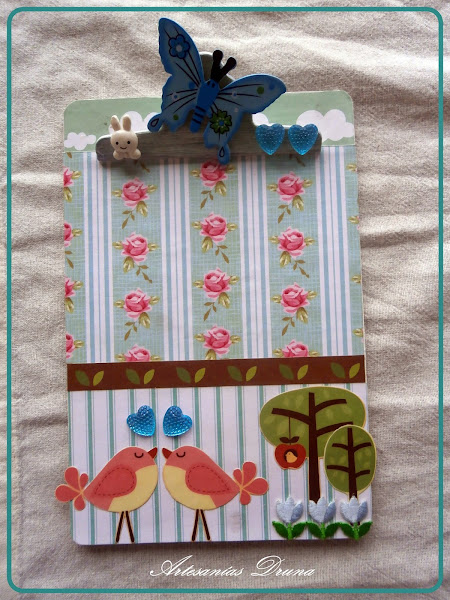 Este cuelganotas es totalmente original para la cocina. Está realizado con papel de scrap, tintas Disstres y diversos adornos de poliresina y tela. Precio: 10 €