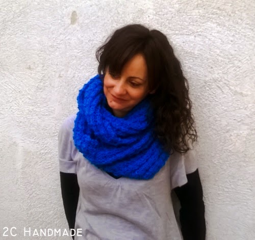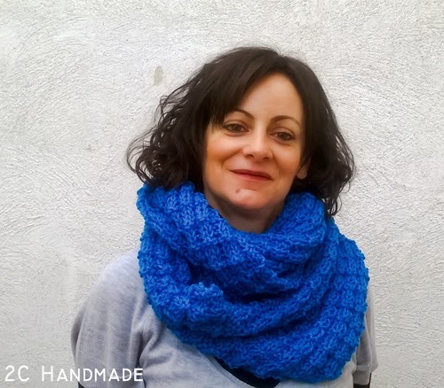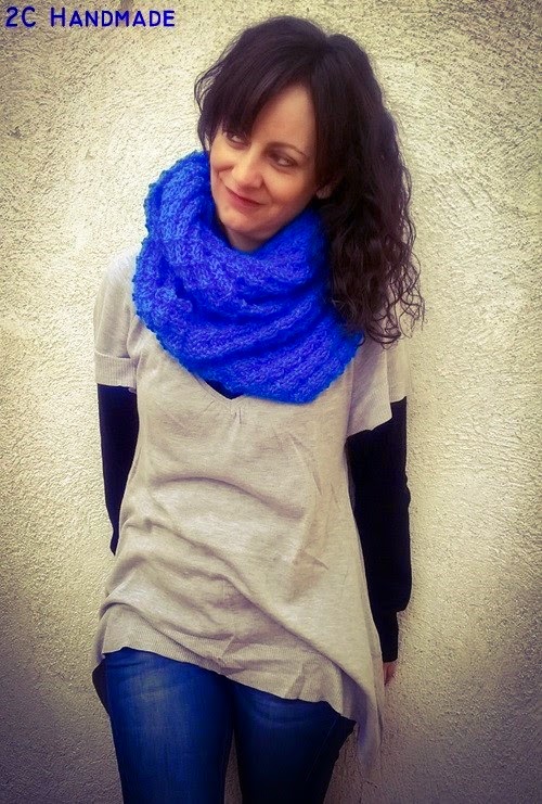 Y para celebrarlo os quiero mostrar mi último encargo de cuellos de la temporada. Se trata de un cuello azul eléctrico, con doble vuelta.