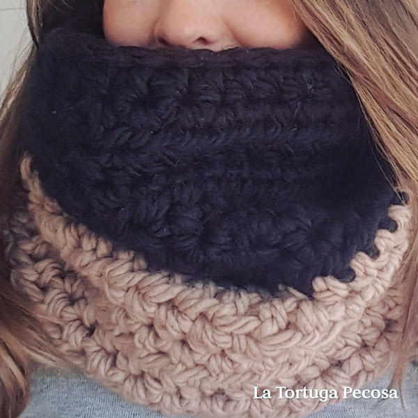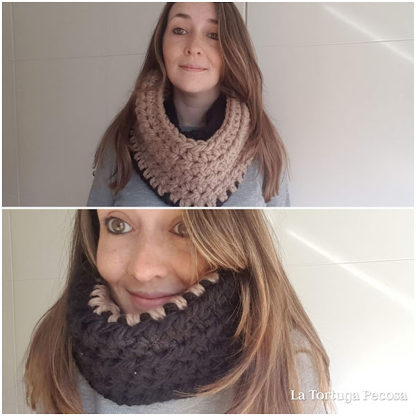 Hoy os traigo este cuello realizado con aguja de bambú del 10 a dos colores pues tiene 2 funcionalidades a la hora de llegarlo: 1 se puede doblar y queda más gordito y solo se ve o el lado claro o el lado oscuro. 2 se puede llevar desdoblado y amplia más la zona del cuello a cubrir.