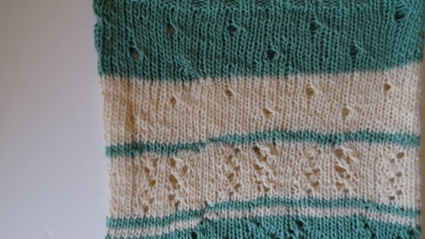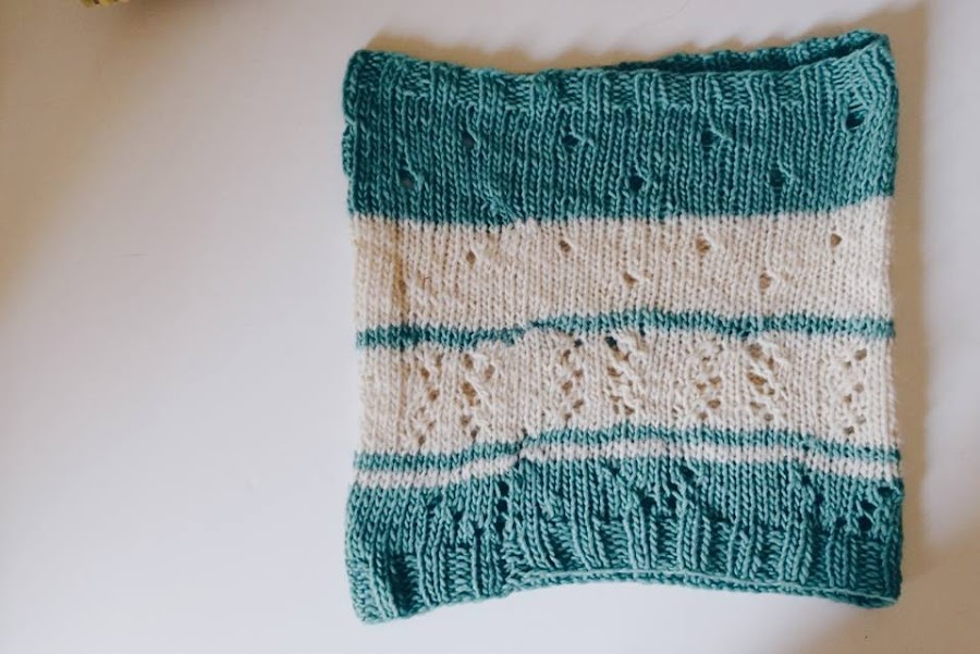 Ahora tocaba ponerse manos a la obra, tenía ganas de hacer un cuello con diferentes puntos, así que una vez ovillada toda la lana me puse a ello y la verdad es que me gusta bastante el resultado. Se trata de un cuello combinando los dos colores y con diferentes calados.
