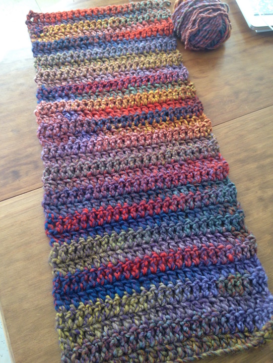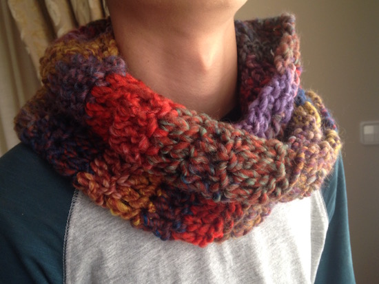 Una vez tejido todo el largo recomendado, el truco consiste en darle media vuelta y coser.