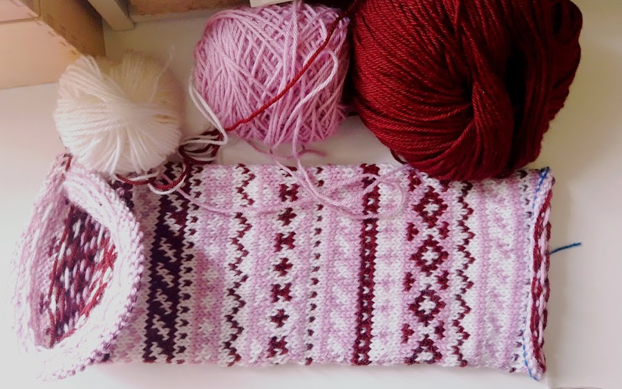 Ahora con la lana definitiva empiezo el dibujo de jacquard