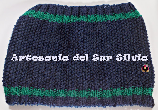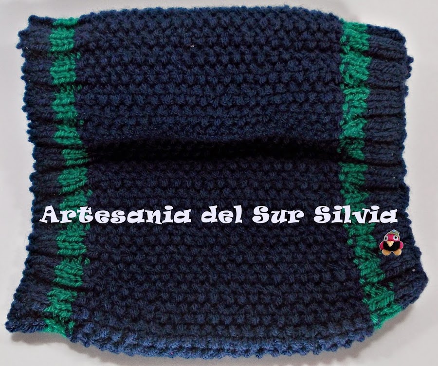 Hoy os hago una entrada rapidita porque ¡¡necesito más horas al día!!!!, ya tengo una prepara del envío de ayer pero hasta que no lo reciban no lo quiero poner, así que os traigo un cuello para adulto. Realizado a dos agujas con punto de arroz y una franja verde.