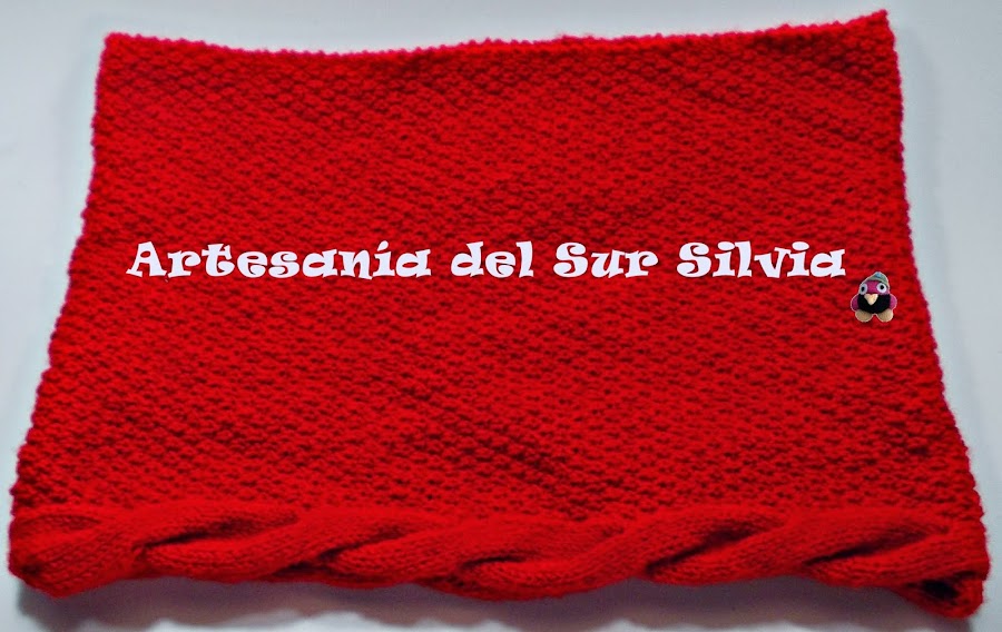 Hoy os traigo un cuello o loop que terminé hace unos días pero no he podido publicar hasta hoy y tengo otro pendiente de cerrar que ya os publicaré. Diseño propio y exclusivo. Es en color rojo, aunque no sé que pasa con el rojo que no sale exactamente como es en la foto, pero el rojo es como el cuello que publiqué hace poco en rojo con un ocho en medio, que por cierto Natalia espero que lo estés disfrutando!!!!.