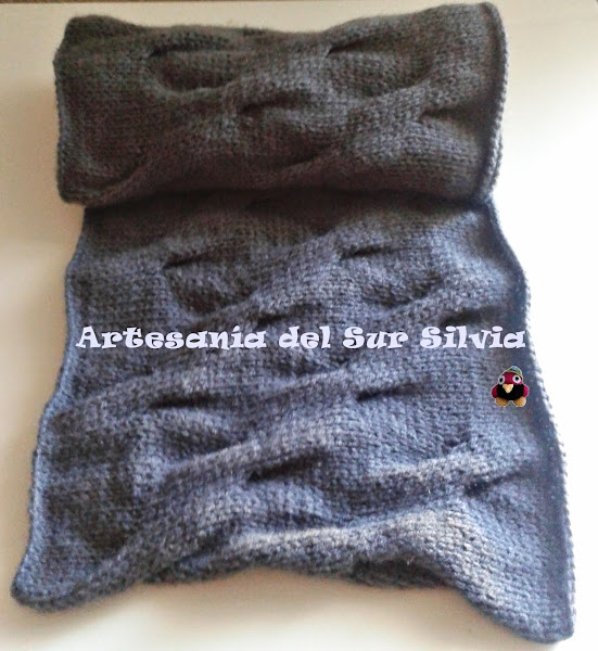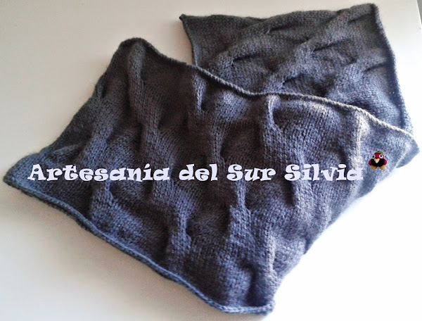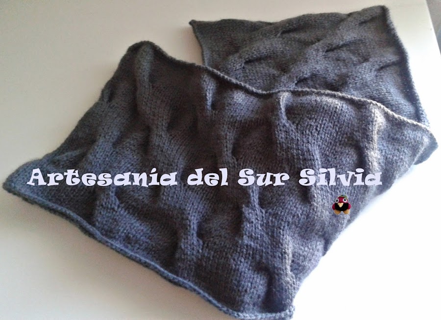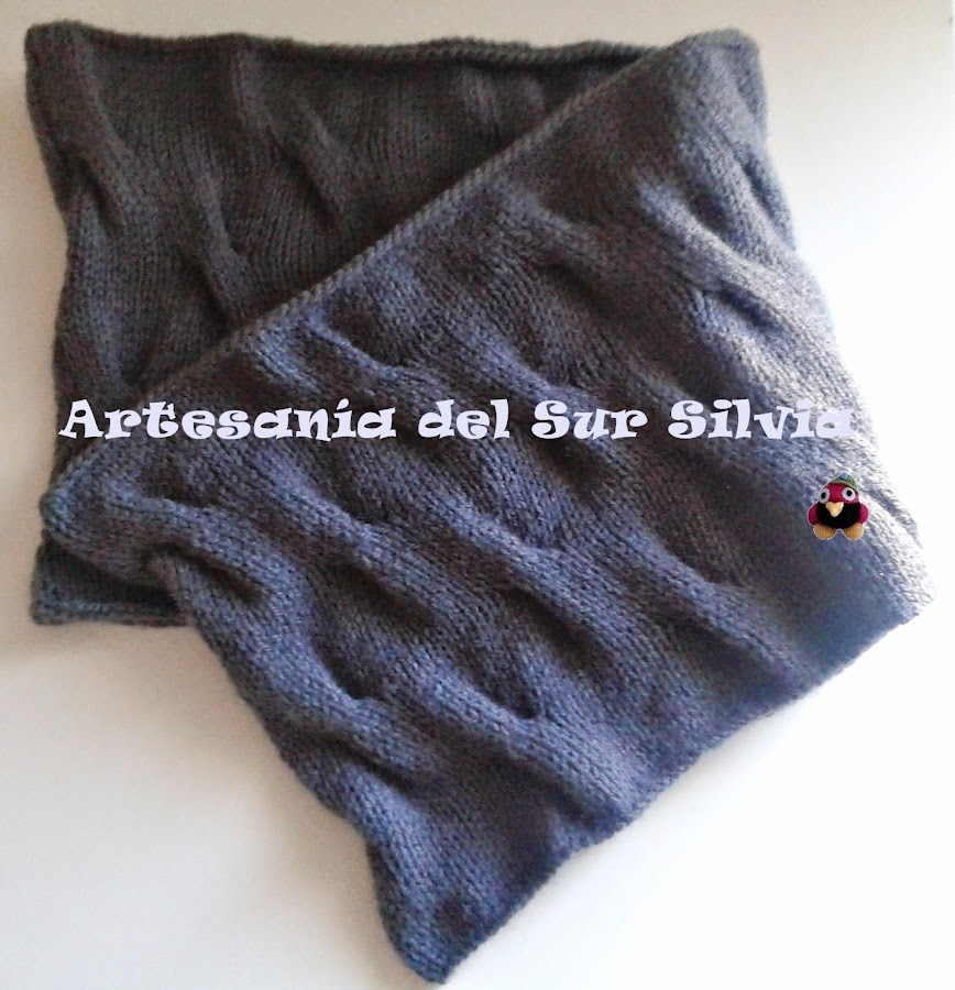 Hoy os enseño un Cuello o Loop, que, como todos los que hago, son de diseño propio y exclusivo. Realizado a dos agujas con un dibujo en relieve, ésta es de color gris, además mide de largo 60 cm, por lo que te la puedes poner normal que cuelgue que se llevan mucho o también dándole otra vuelta para que se quede doble. Queda fantástica y muy original puesta, de hecho, nada más ponerla en tienda ¡¡¡¡ya tiene dueño!!!! así que quien quiera una tiene que encargarla.
