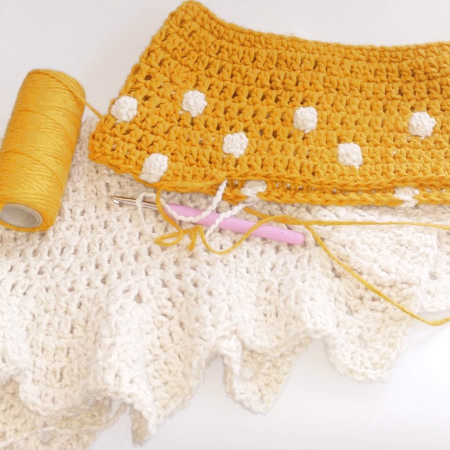Ahh! Y también quiero rectificar que el tipo de punto que un principio yo le llamaba punto piña, creo que sería más bien un punto popcorn o bodoque porque la idea es que sobresalga más del resto de puntos altos.