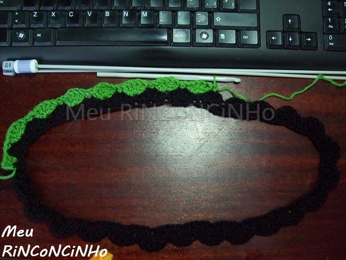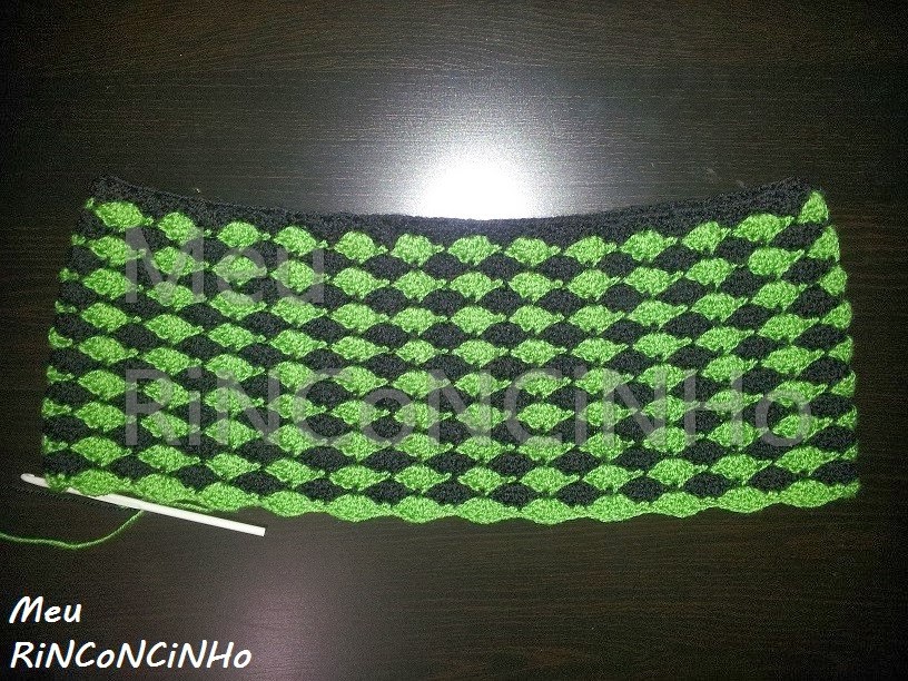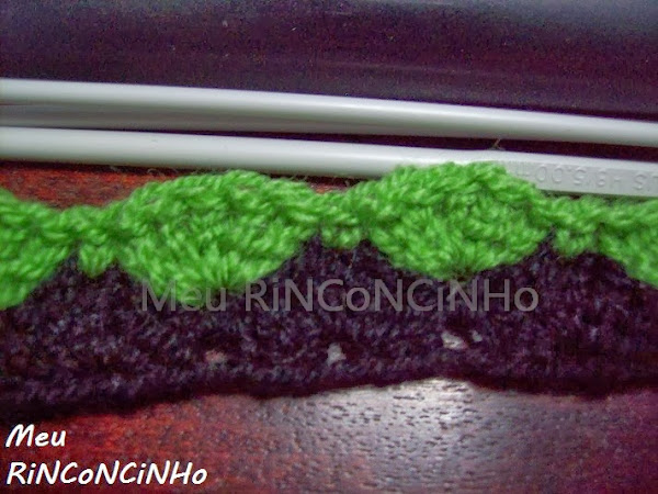 Como podéis observar he usado dos tonos de lana verde y negro ya que solo en negro (de un principio queria solamente un color, el negro) no se notaban nada las conchas .. asique me acorde de q en mi caja de lanas tenia una en tono verde (era para mi south bay shawllette)