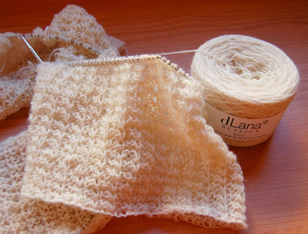 Me gustó mucho tejerlo y lo hice en tiempo, porque 4 vueltas al día no era mucho trabajo. Usé un ovillo y parte de otro de una lana rústica 100% de Dlana 50 gramos = 250 metros y agujas del 3.5
