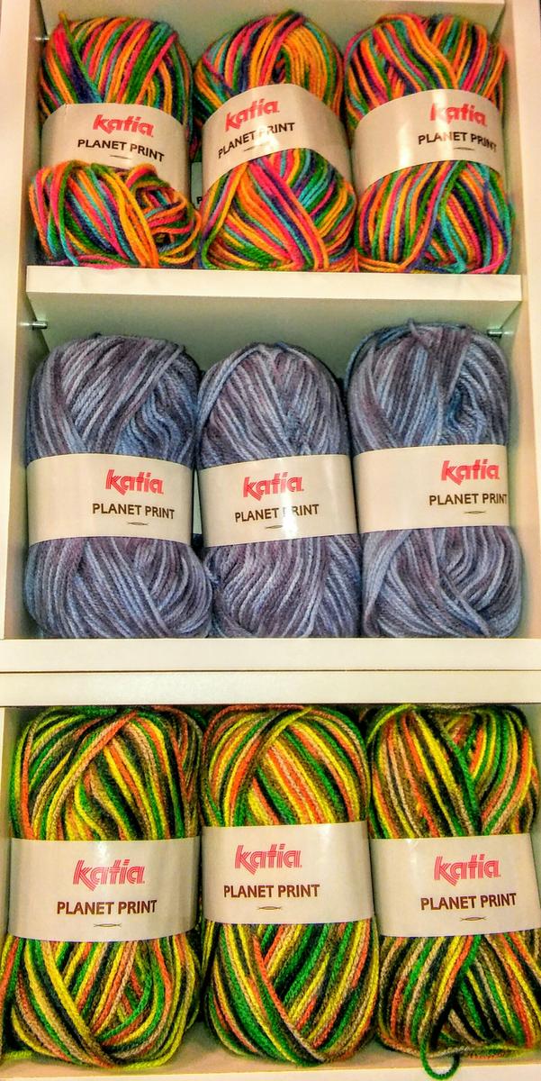 Aquí podéis ver algunos de los colores de está calidad de lanas Planet Print de Katia.
