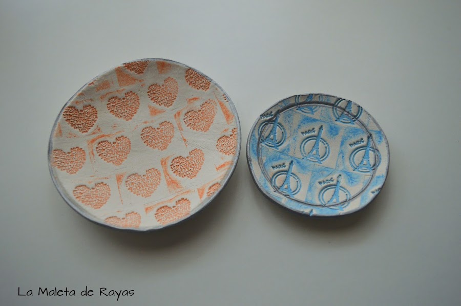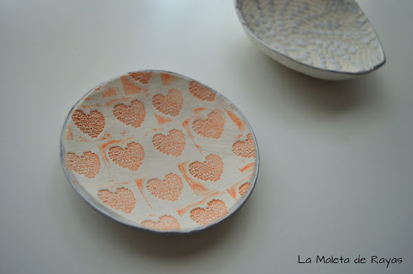 ¿Os gusta como queda? Aquí os dejo una foto de otro cuenco que hice más pequeño con otro sello de estampación diferente: