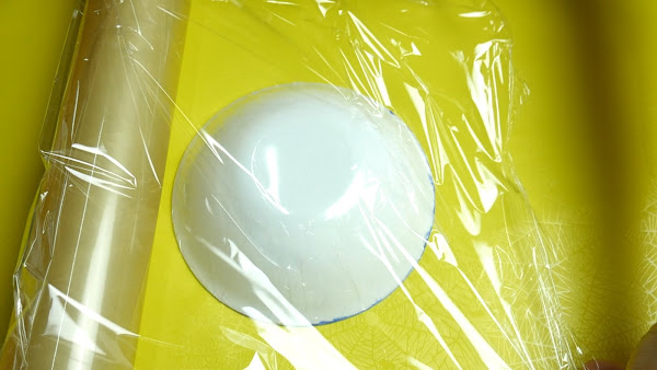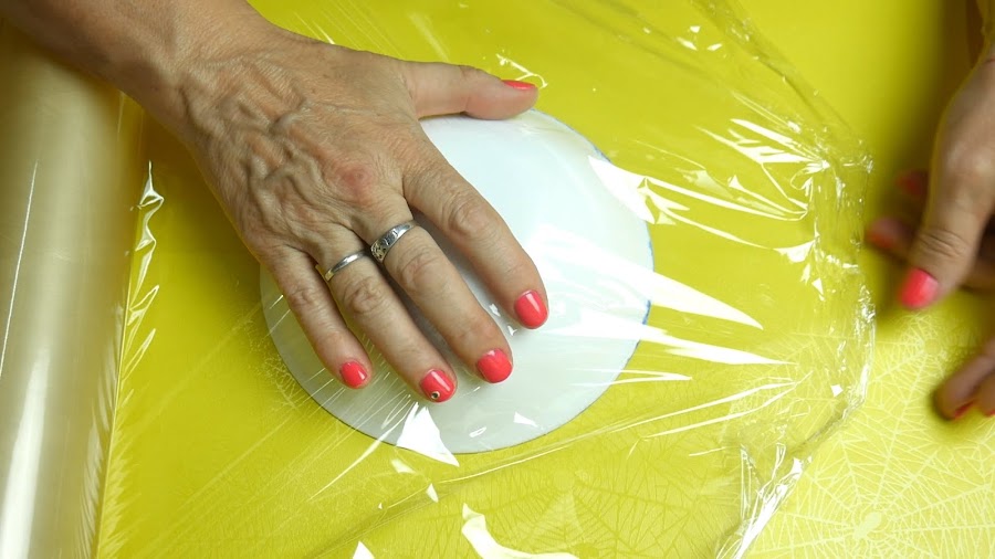 Para comenzar a trabajar coloco una primera capa de film adherente que me va a permitir el desmolde emparejo los pliegues y presiono para que se adhiera bien a la superficie del bols y doblo el exceso hacia el interior