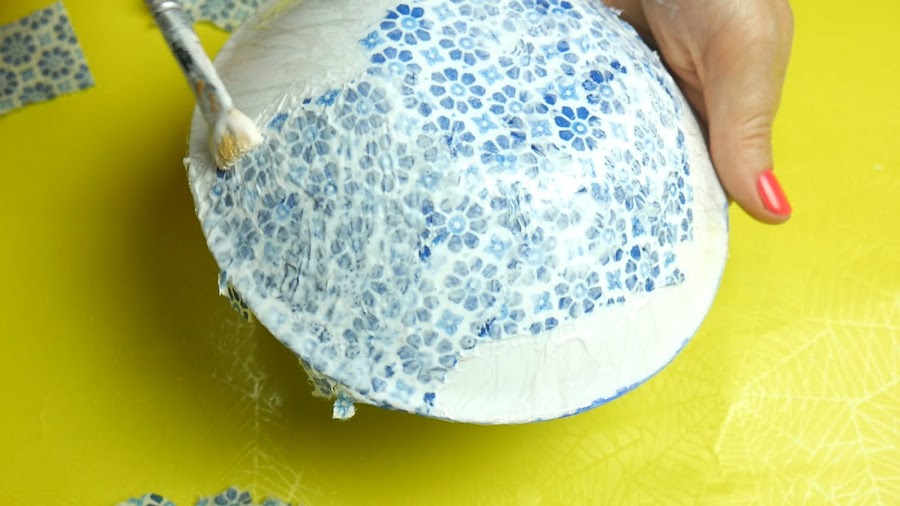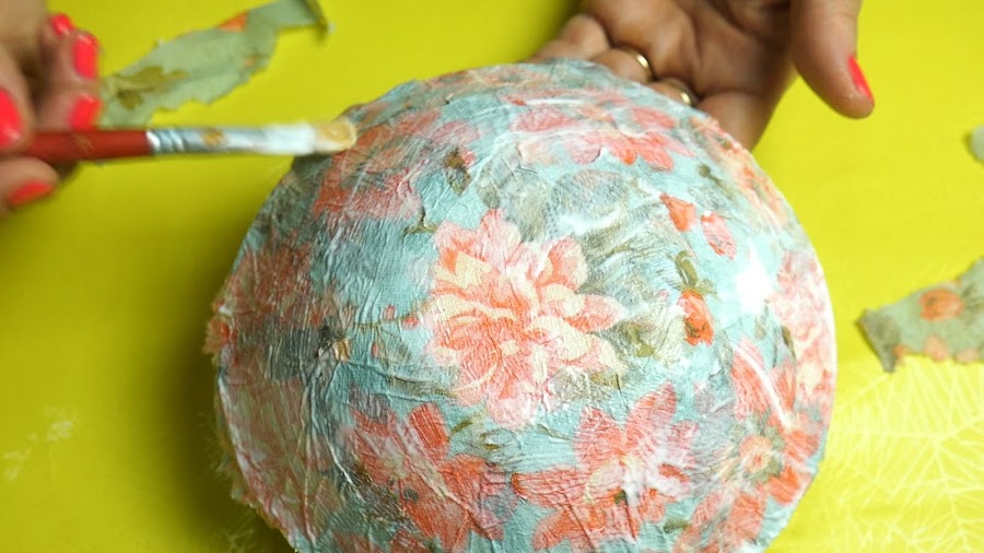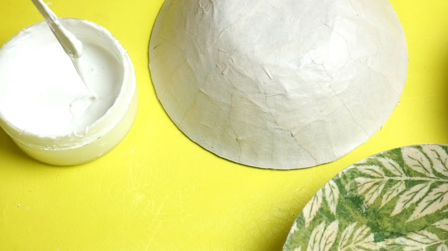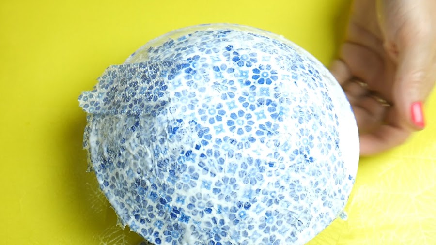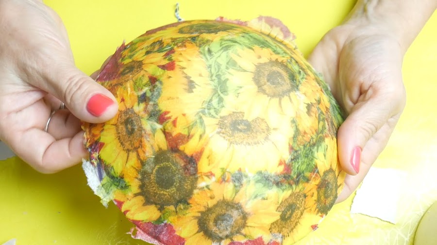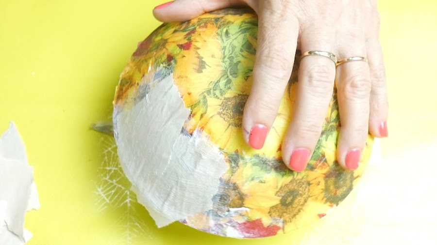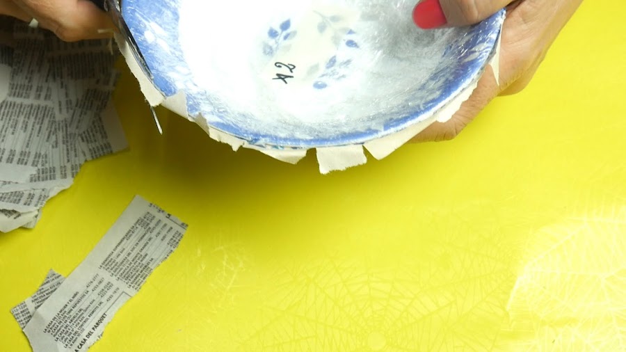 Al principio da la sensación de que quedará arrugado pero cuando se seca mejora la superficie cuando terminen de completar con el papel giren la pieza para ver que no halla quedado ningún espacio sin cubrir porque después se va a notar