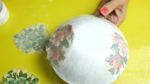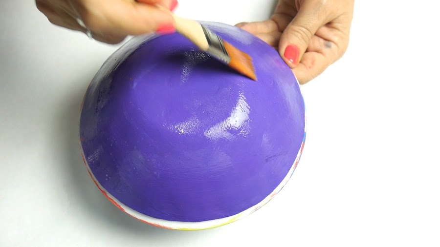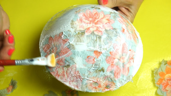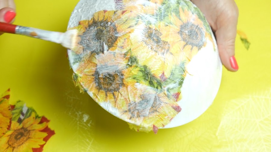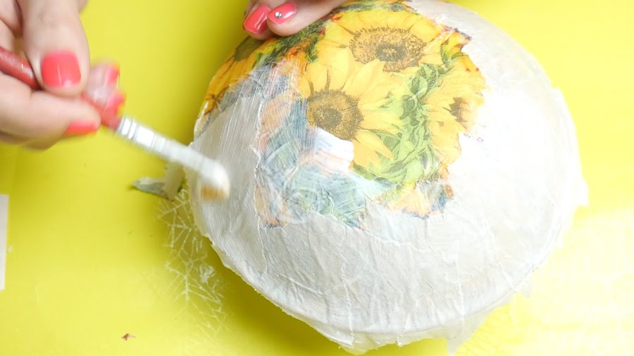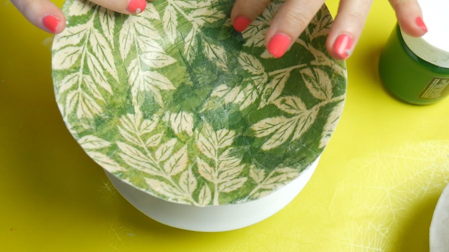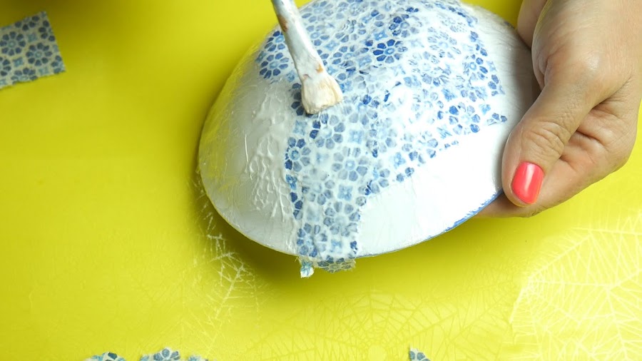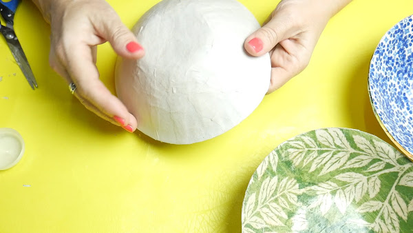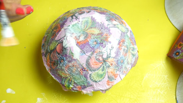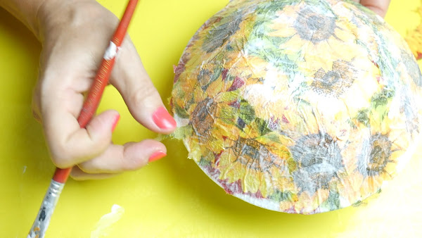 Al principio da la sensación de que quedará arrugado pero cuando se seca mejora la superficie cuando terminen de completar con el papel giren la pieza para ver que no halla quedado ningún espacio sin cubrir porque después se va a notar