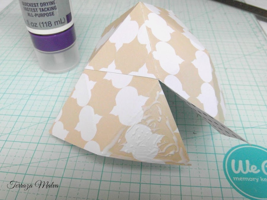 Sólo queda pegar los triángulos marcados con el símbolo, situándolos debajo de los adyacentes.