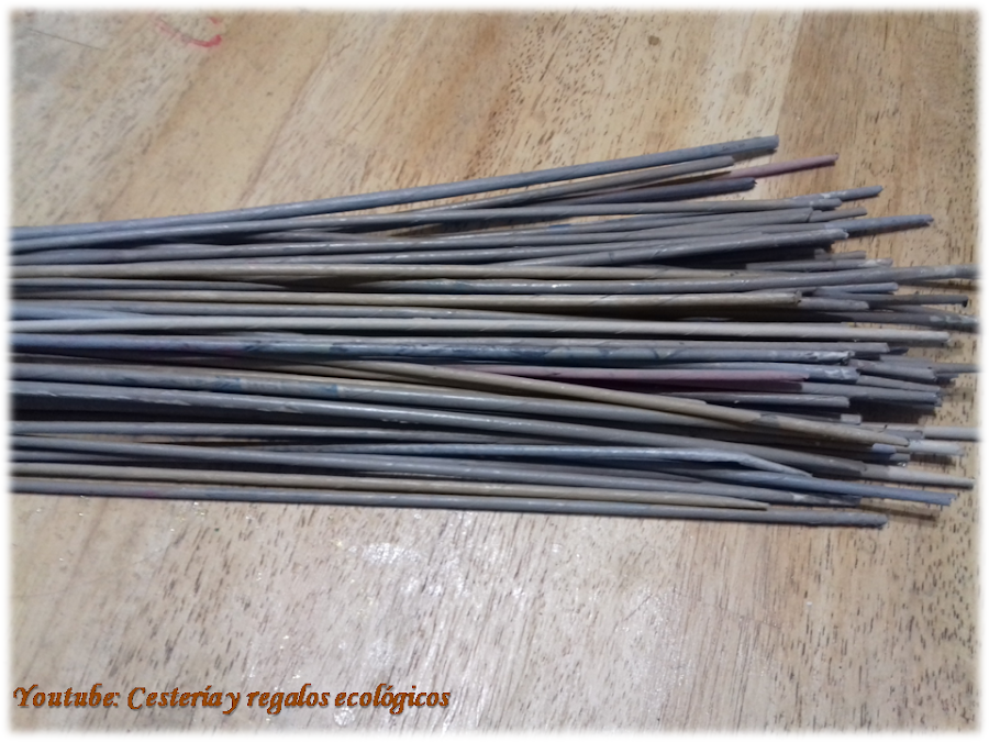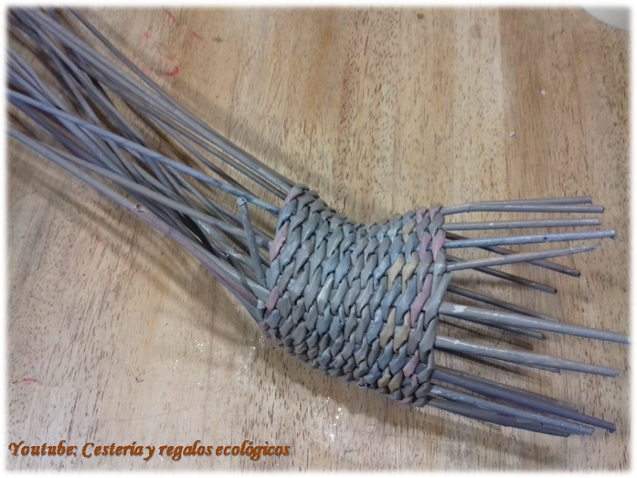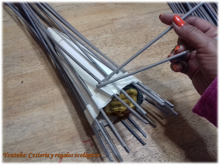 Y eso es todo, iremos cruzando las varillas y llevarlas por atrás de la siguiente varilla vertical, de esta manera damos una vuelta, y la segunda vuelta la pasamos por encima de la primera...