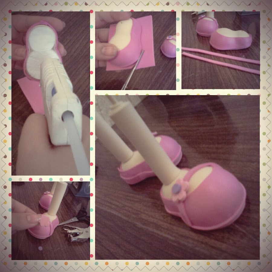 *corte un trozo de foami y pegue en la zapatito haciendo una especie de suela....